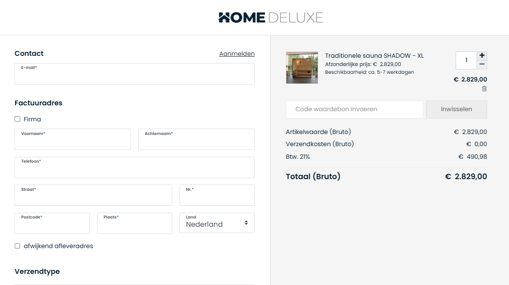 - Ga naar homedeluxe.de/nl en voeg je gewenste product toe aan de winkelwagen.