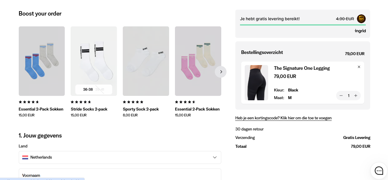 - Voer je kortingscode in Klik op "Heb je een kortingscode? Klik hier om die toe te voegen" onder het bestellingsoverzicht. Typ je Stronger kortingscode exact in en bevestig de code.