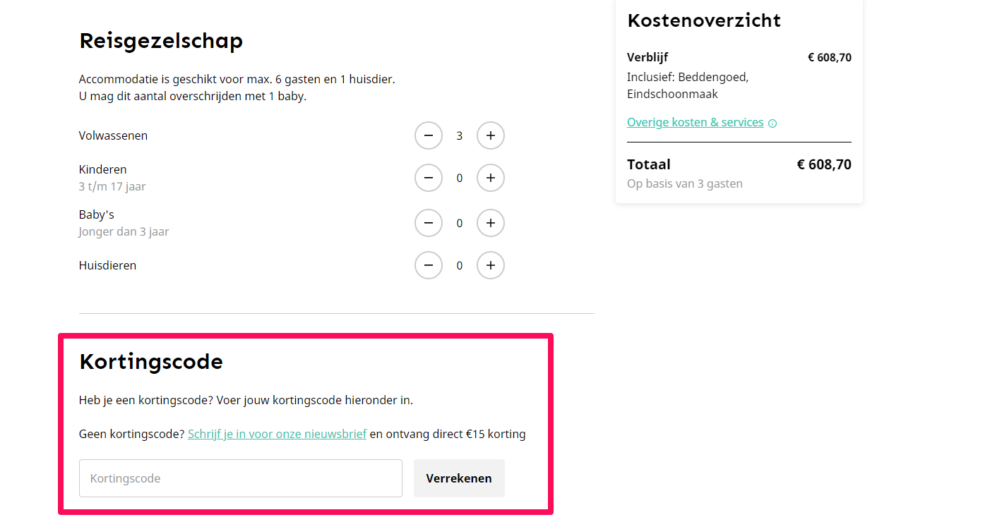 - Vul de kortingscode in onder het kopje Kortingscode en druk op Verrekenen. Het voordeel wordt onmiddellijk duidelijk.